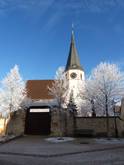 Ein Blick auf Göbrichen aus der Luft zeigt: Unser Dorf hat einen echten Mittelpunkt! Umgrenzt ist er von einer altehrwürdigen Wehrmauer. Sie umgibt Pfarrscheuer, Pfarrhaus, Kirchgarten und - unser Juwel! - die Kirche St. Ulrich. Sie kündet von Jesus, dem Mittelpunkt unseres Lebens! Ihm sollen unsere Gebäude dienen.